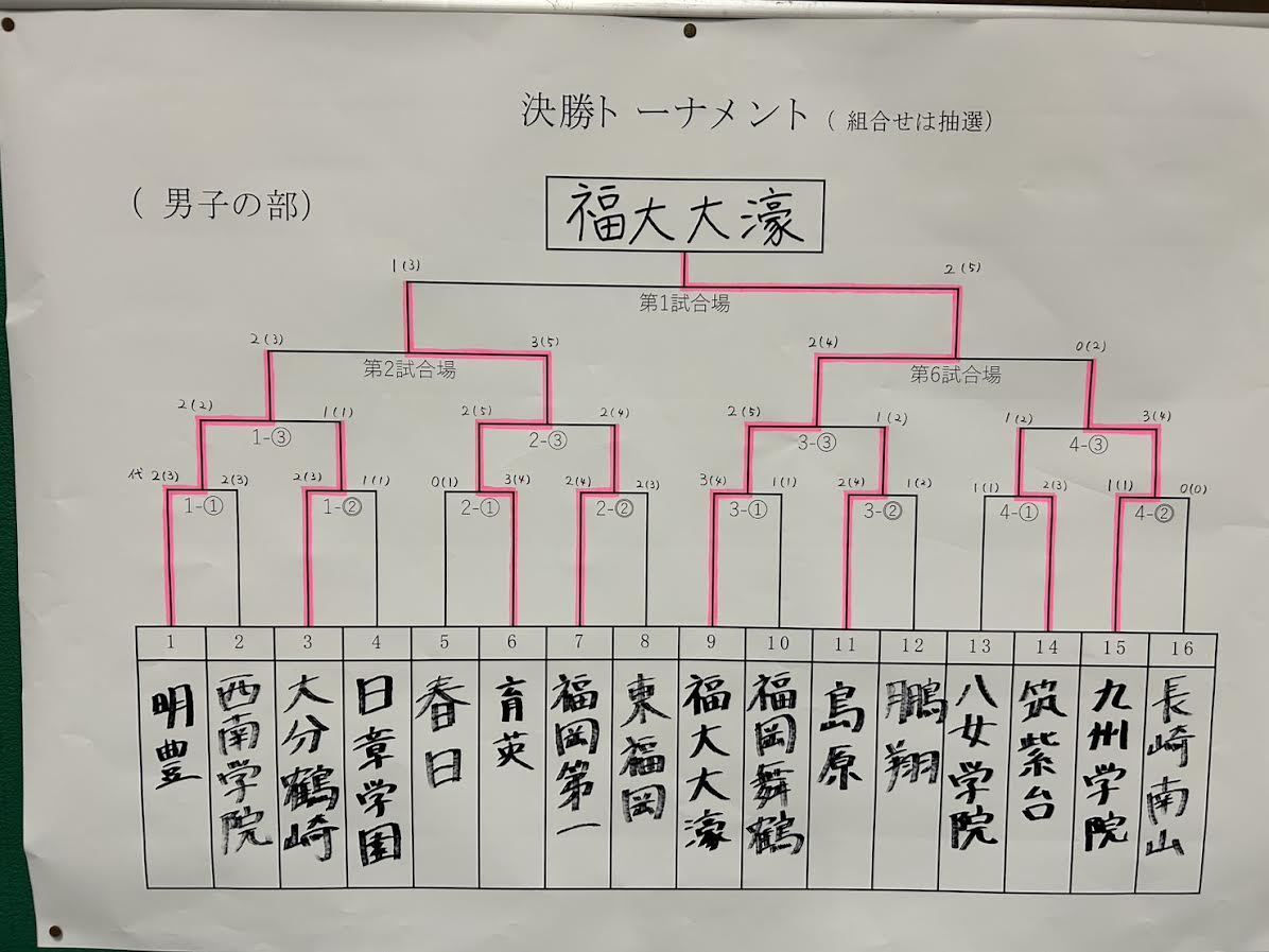 男子決勝には福岡大学付属大濠高校、育英高校が進出し、2-1で福岡大学付属大濠高校が2連覇3度目の優勝を飾りました。
